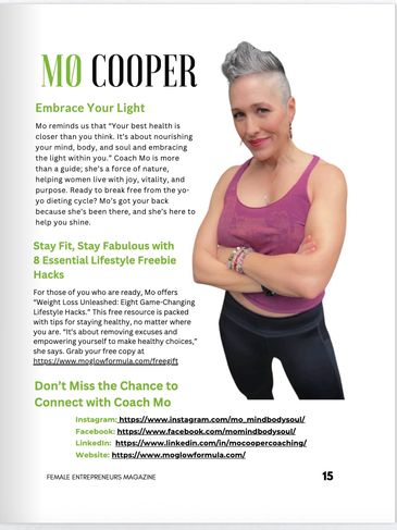 Featured in Female Entrepreneur Magazine for my work helping women lose weight with real food, real life, and zero guilt!